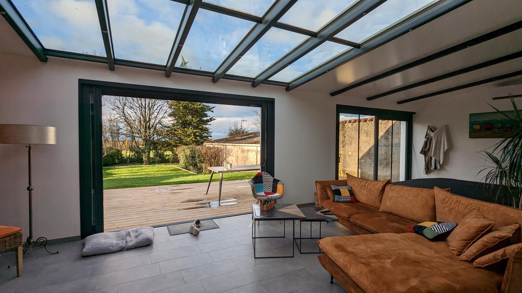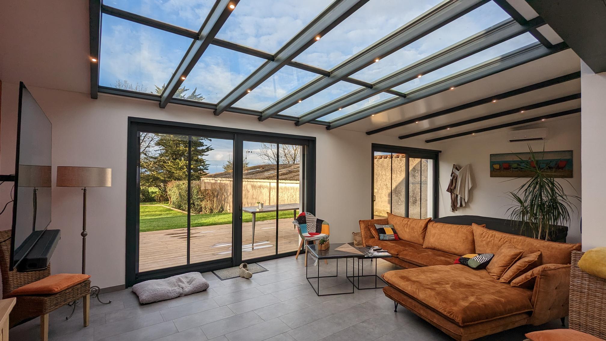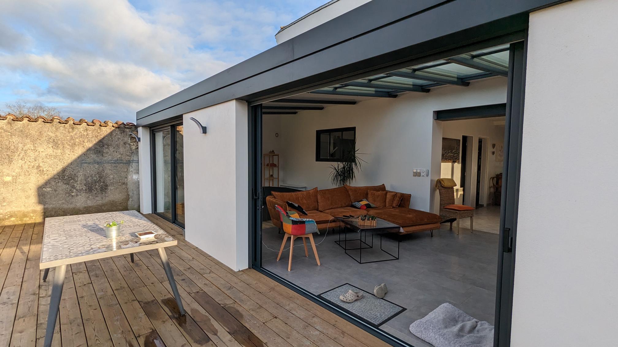 Création d’un espace de vie sur une construction neuve. Verre sécurit, toit isolé pour une utilisation tout au long de l’année.