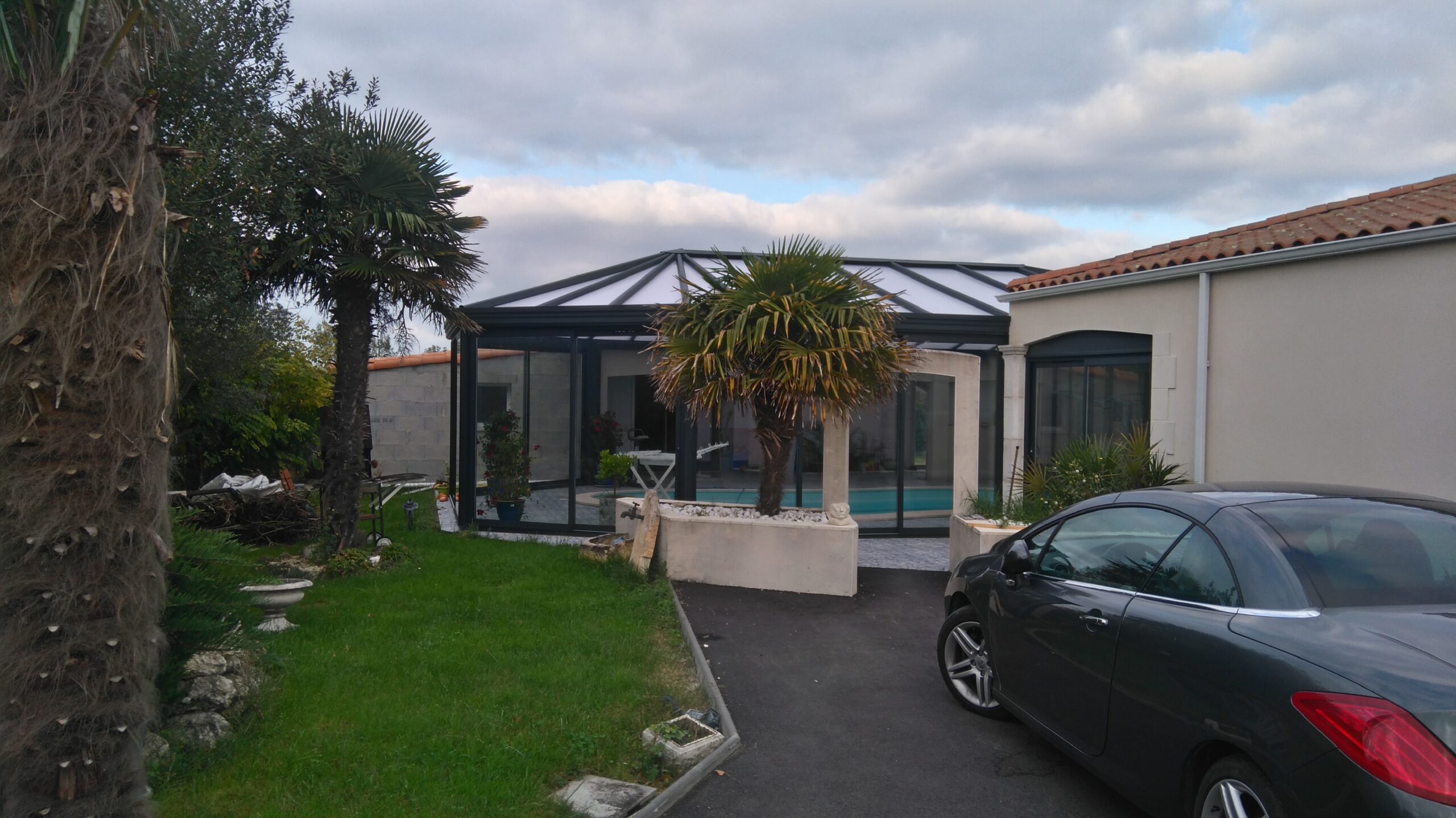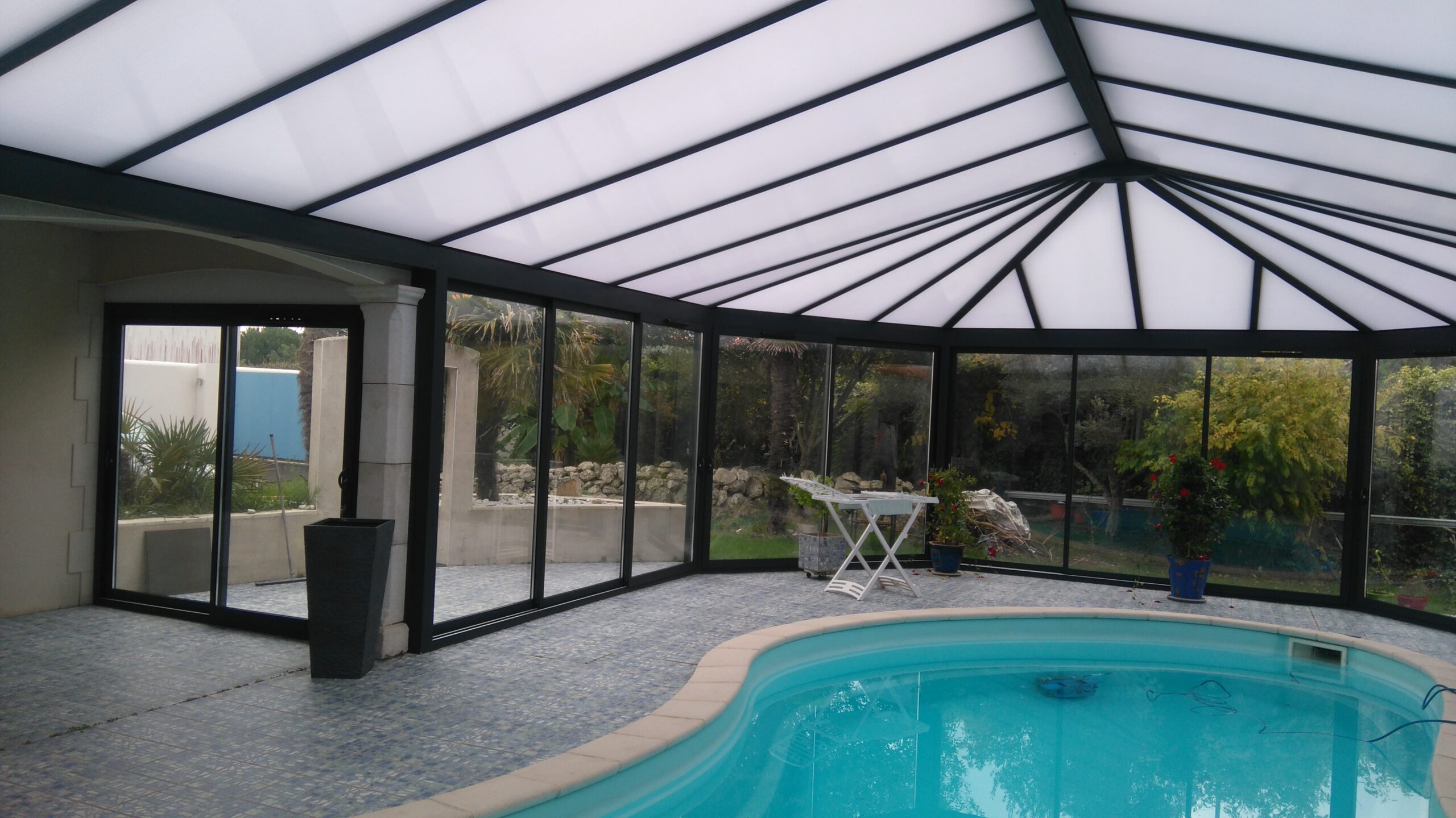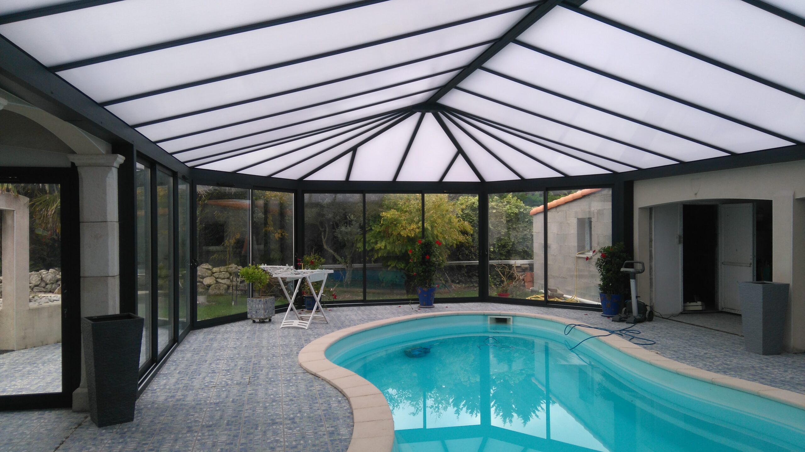 Création d’un espace de de détente abritant une piscine. Espace couvert exceptionnel de 1000M². Forme sur mesure, toit anti UV, ventilation contrôlée.