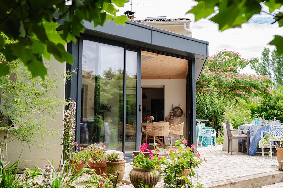 À La Rochelle, en Charente-Maritime, les propriétaires souhaitaient repenser leur espace de vie en ajoutant une extension chaleureuse, lumineuse et connectée au jardin. Leur objectif : créer une pièce multifonction, agréable toute l’année, avec un fort parti pris architectural.
